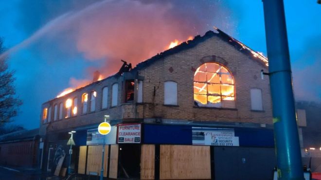 The blaze, which began at 18:10 BST, was under control at about 23:50.